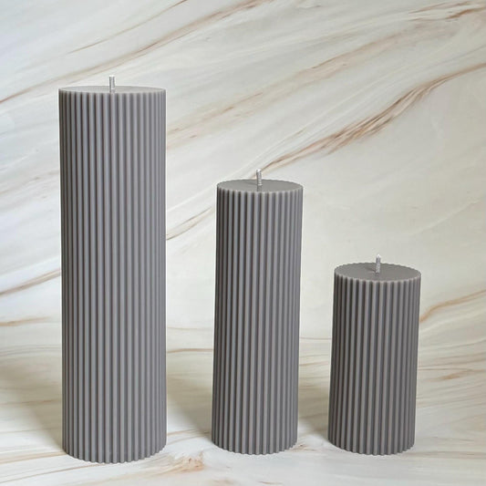 Large Grey Ribbed Tall Ribbed Scented Pillar Candles - Handmade Home Decor