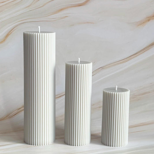 Large Tall Ribbed Pillar Candles - Handmade Home Decor