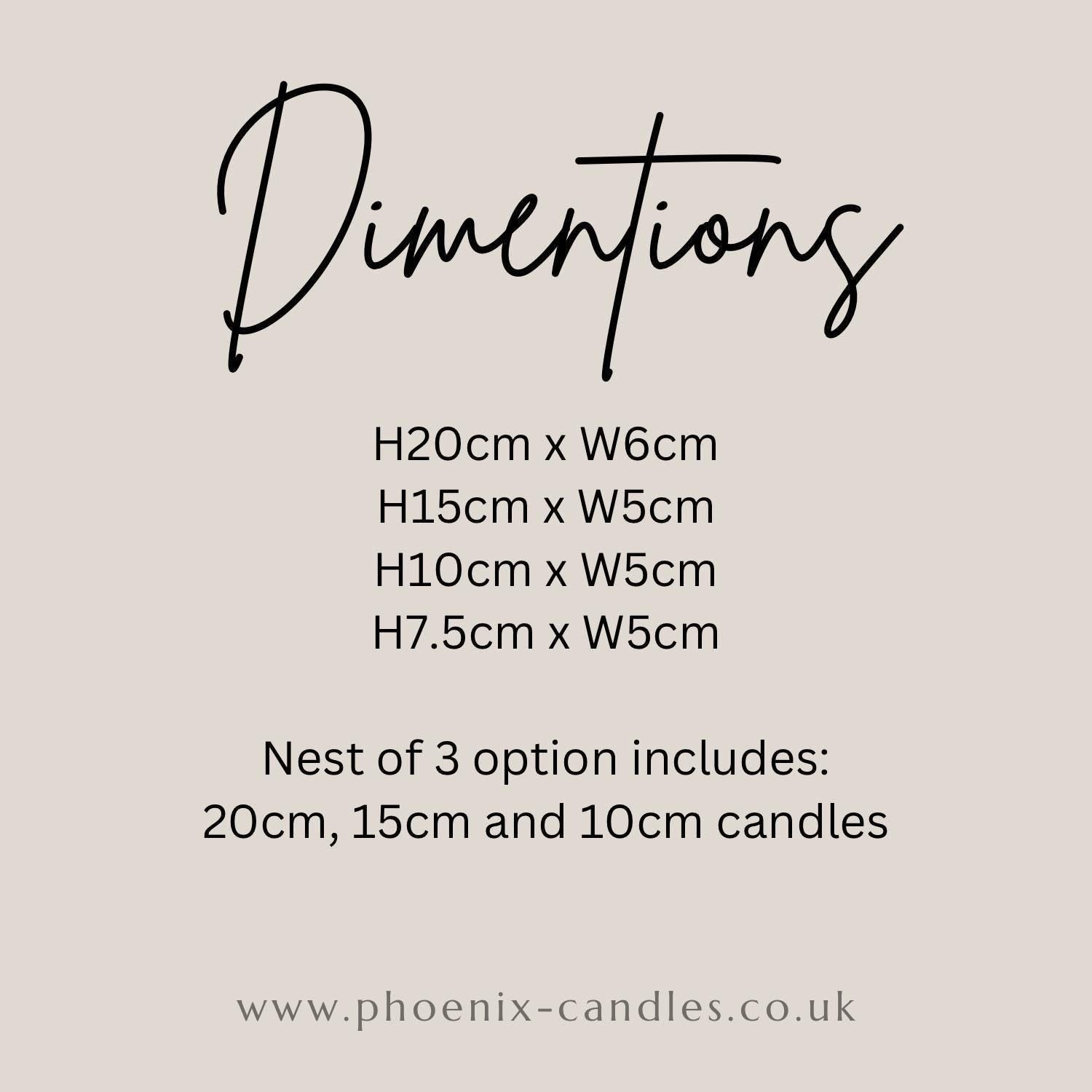 Nest of 3 option includes a 20cm, 15cm and 10cm candle