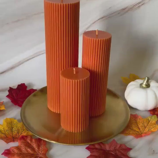 Cinnamon Vanilla Tall Ribbed Scented Pillar Candles - Handmade Home Decor