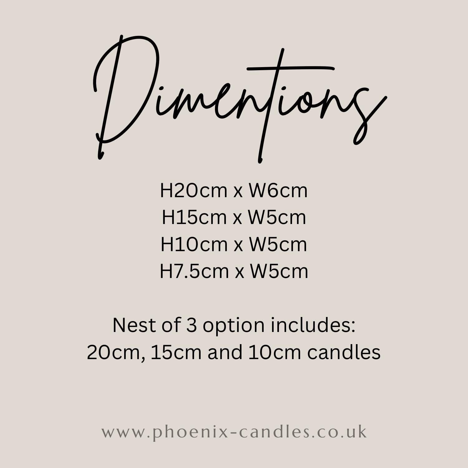 Nest of 3 option includes 20cm, 15cm and 10cm candles