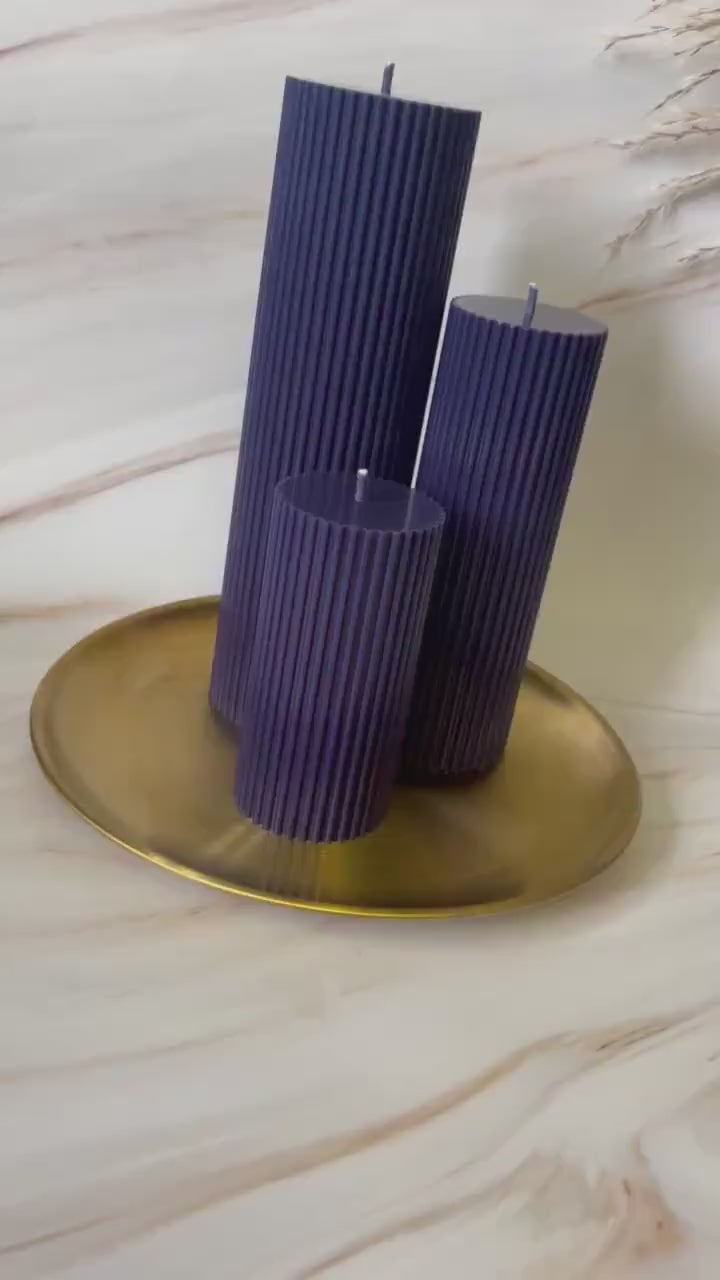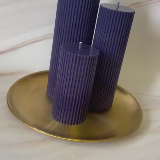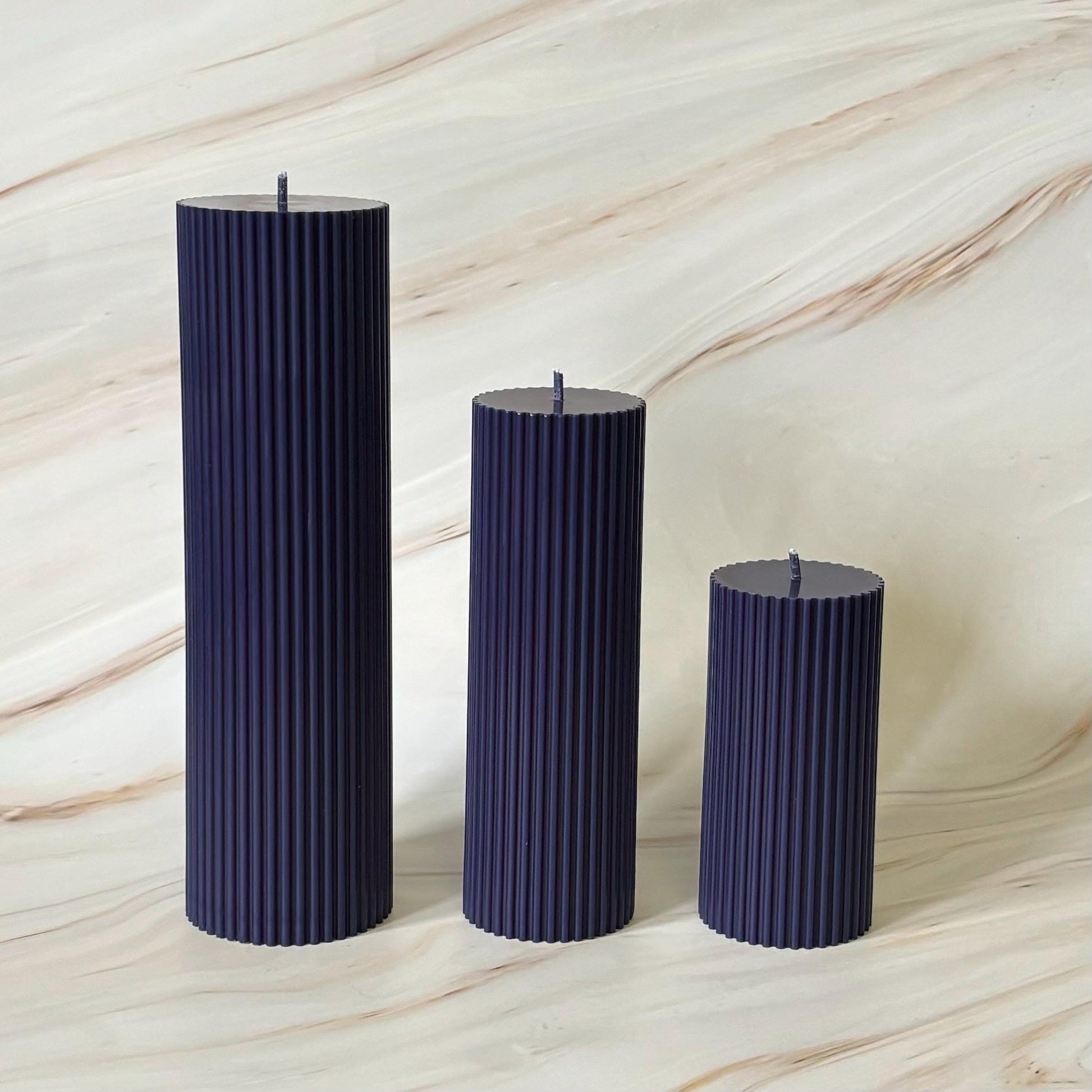 Large Navy Blue Tall Ribbed Scented Pillar Candles - Handmade Home Decor