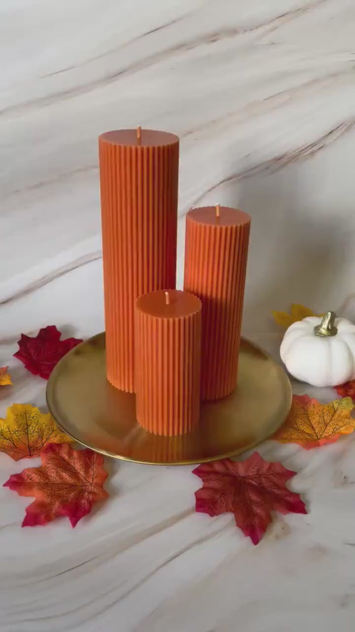 Large Tall Ribbed Pillar Candles - Handmade Home Decor