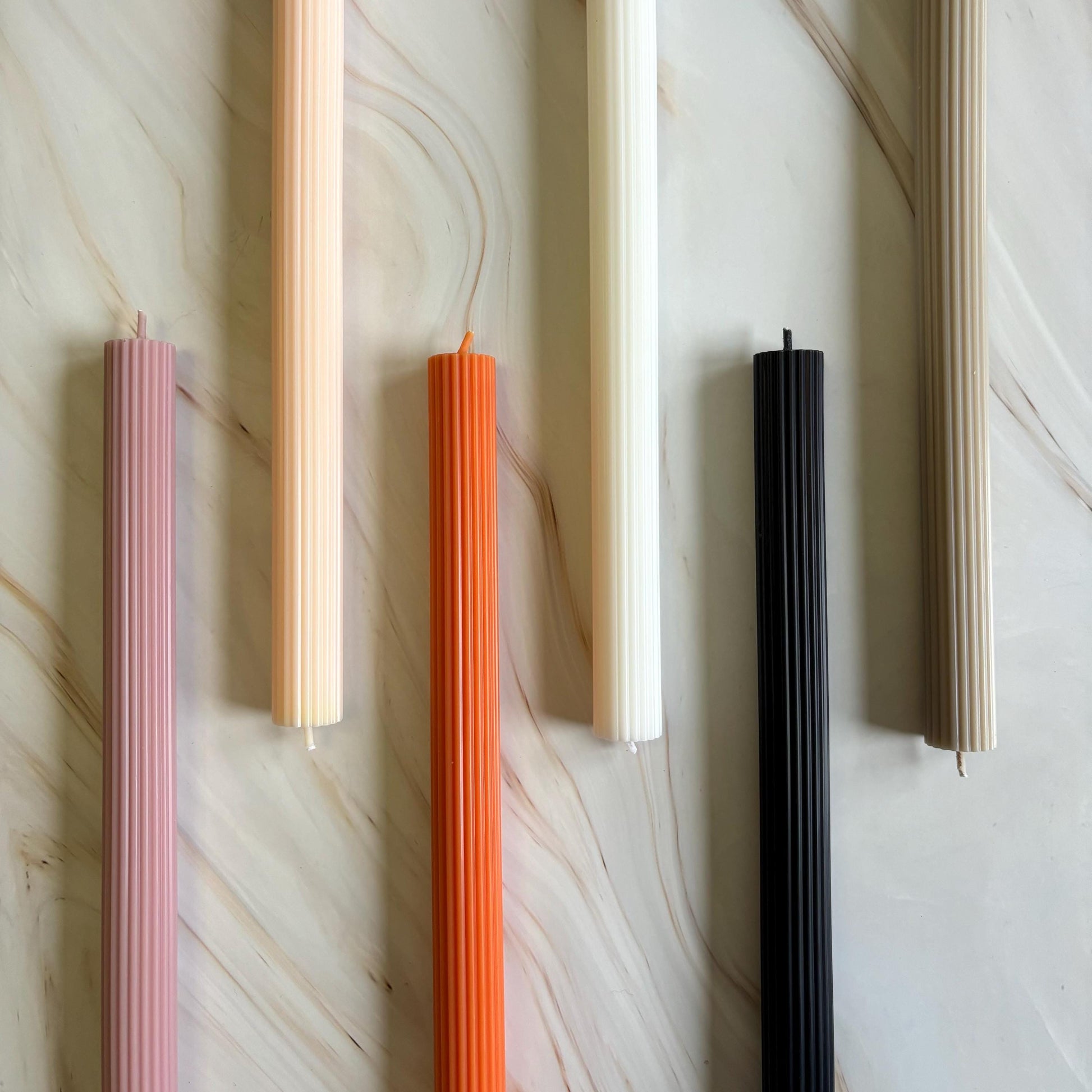 Enhance your dining experience with our 25cm Tall Ribbed Thin Tapered Candlesticks (Pack of 2). These decorative, handmade dinner candles feature a sleek, ribbed design that adds a touch of elegance to any setting. Perfect for a neutral aesthetic decor, they make a stunning centrepiece for your table or a thoughtful gift for someone special.