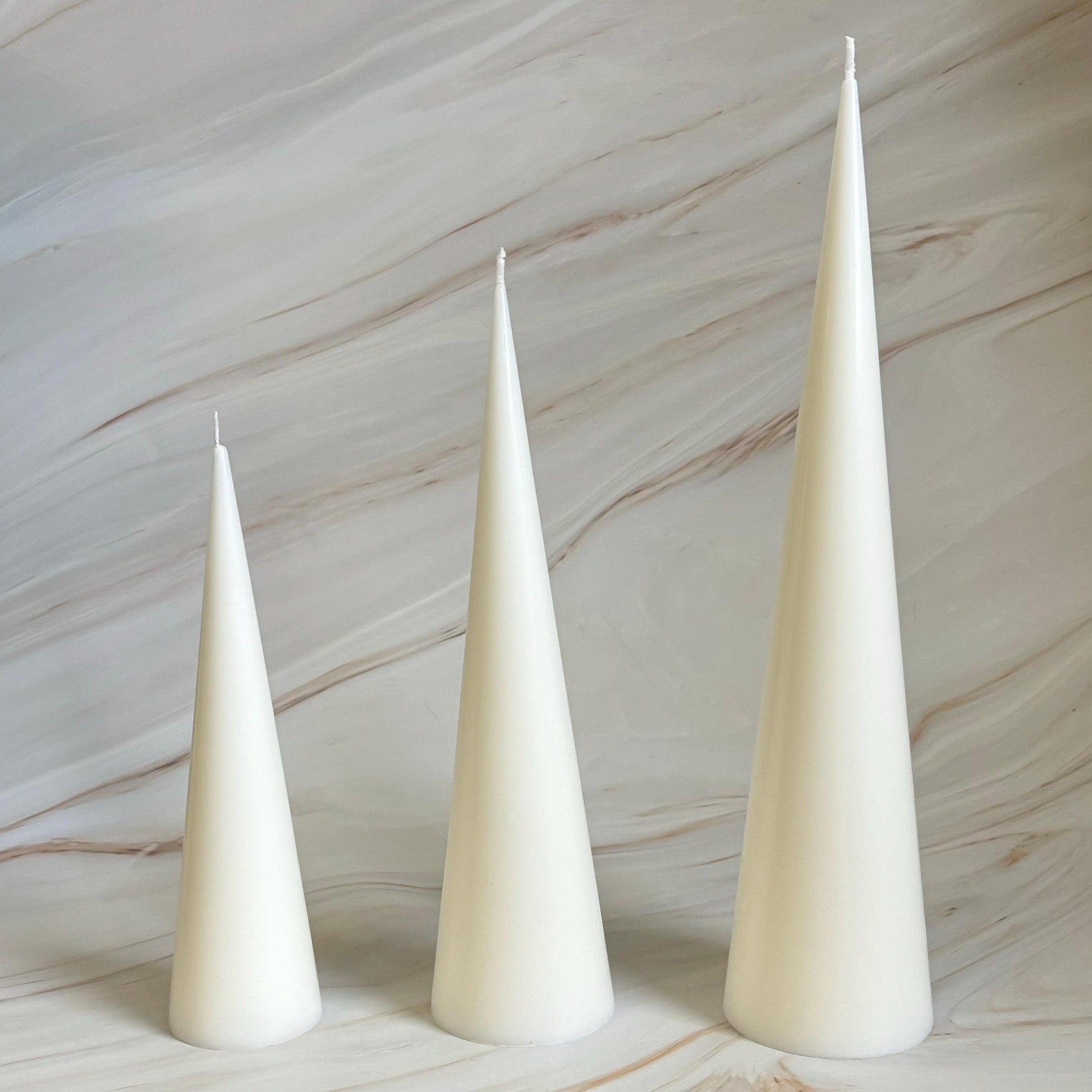 Elevate the ambiance of your space with our Tall Minimalist Cone Shaped Pillar Candles. These elegant, unscented candles bring a touch of sophistication to any room with their sleek design. Available in a variety of colours, they seamlessly blend with any decor. Transform your home with the refined look of our premium candles.
